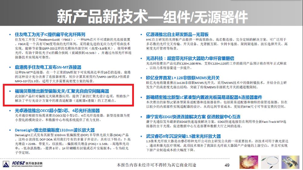 福瑞贝斯偏振无关 / 汇聚光自由空间隔离器获评行业“新产品新技术“
